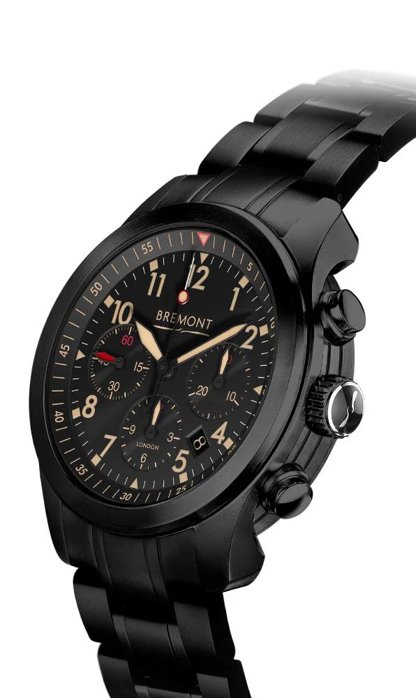 Based off the original ALT1P pilot’s watch, the definitive aviation chronograph, the hardened DLC case and black dial of the ALT1-P2 JET combined with our iconic ’51 lume’ offers total clarity and legibility to the wearer. Passionate about celebrating British engineering and innovation as part of the testing cycle we have teamed up with veritable aviation pioneers Gravity Industries to test the new watch. This is the first DLC-coated case in this line and turning the watch over reveals a smoked crystal exhibition case back with black rotor continuing the stealthy aesthetic. Stainless steel bracelet.